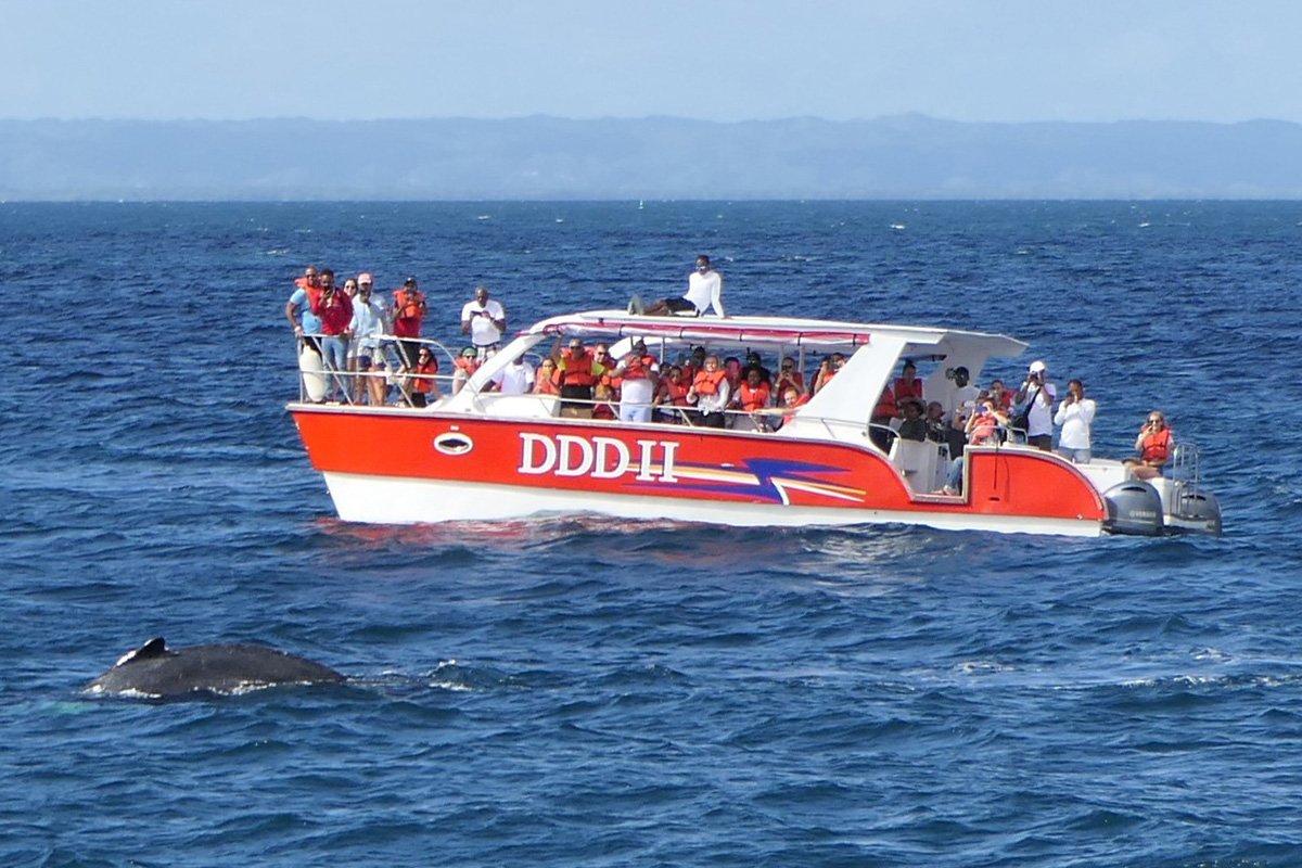 DDD Whale Watching tiene un nuevo catamarán a motor de 40 PIES que ofrece un agradable y suave paseo en el agua para ver de cerca a estas gigantescas ballenas jorobadas que visitan la bahía de Samaná cada año.